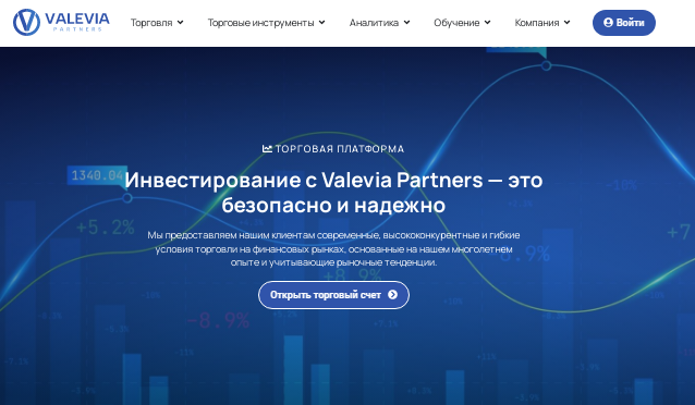 Valevia Partners относится к категории универсальных биржевых брокеров. Помимо предоставления базовых возможностей фирма позволяет клиентам получать аналитическую поддержку. Компания явно ориентирована на сотрудничество с профессиональными спекулянтами, разделы ее сайта сложно будет понять новичкам без опыта коммерческой работы.