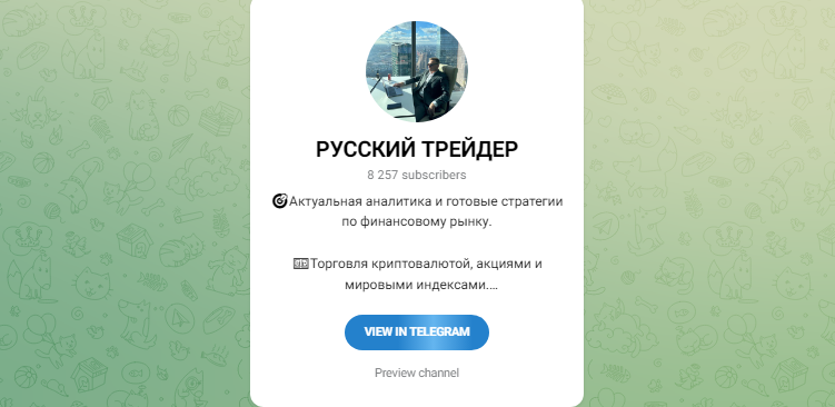 На день проведения обзора Телеграмм-канал РУССКИЙ ТРЕЙДЕР насчитывал 8 258 подписчиков.